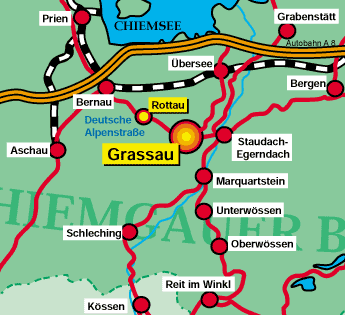 Über die Autobahn A8 kommend, Abfahrt Bernau am Chiemsee, Richtung Grassau,